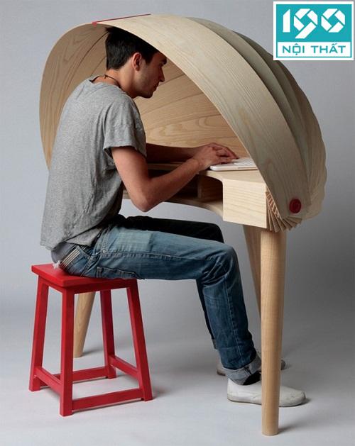 Chiếc bàn có mái vòm như chiếc vỏ ốc giúp bạn có không gian làm việc tuyệt đối riêng tư.