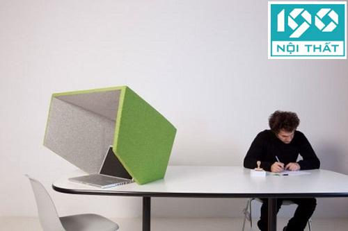Nếu bạn ngồi chung bàn với rất nhiều người thì chiếc hộp này sẽ là cứu cánh cho bạn những lúc cần cực kỳ tập trung vào công việc. Thiết kế giống như chiếc vỏ linh hoạt này rất hoàn hảo và có thể tích hợp với nhiều loại bàn làm việc. Nó giúp bạn "ngắt kết nối" với mọi thứ xung quanh, cho phép bạn tập trung cao độ vào một thứ duy nhất. Khi xong việc bạn chỉ cần đặt chiếc hộp ra chỗ khác lại lập lại "kết nối" với đồng nghiệp.